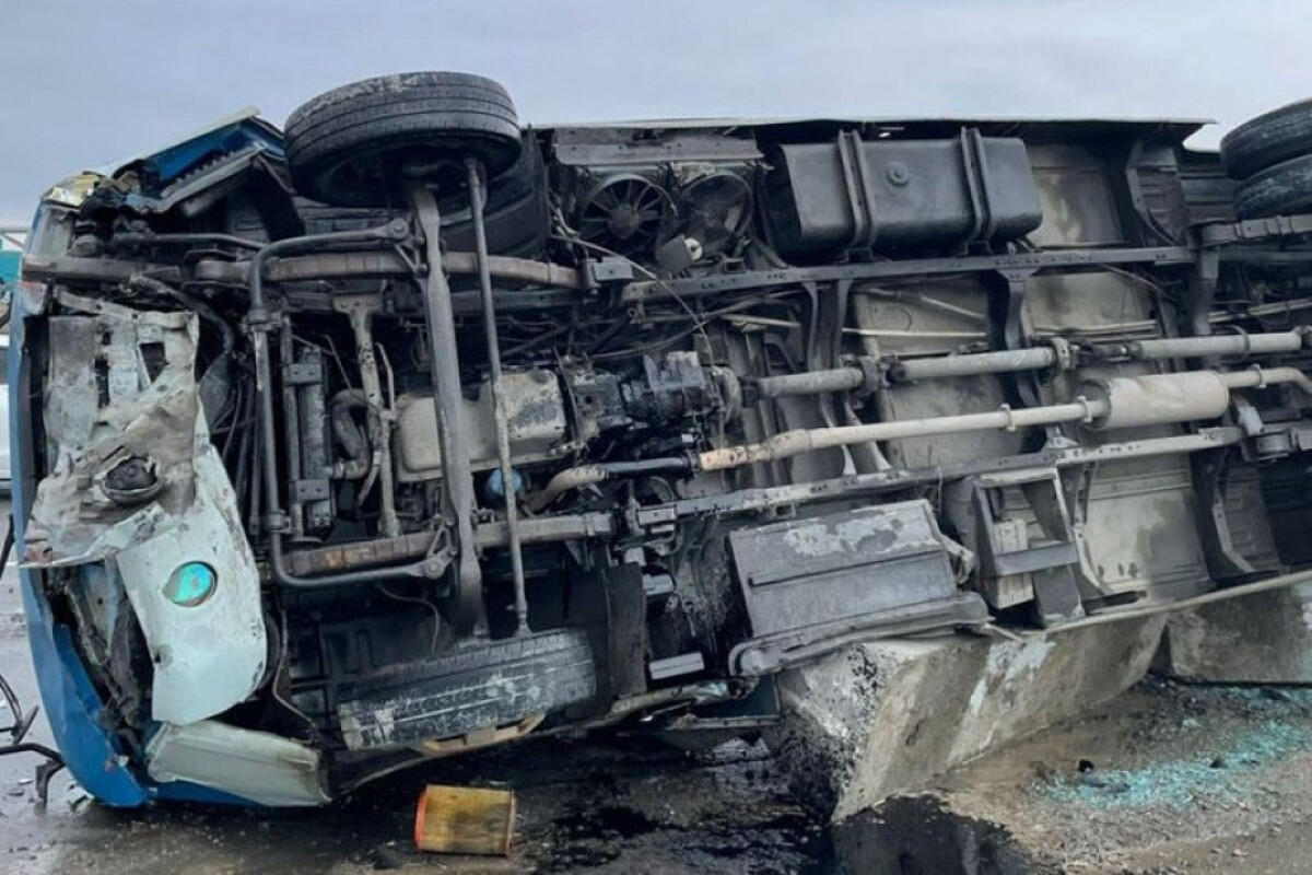 Сообщается, что перевернувшийся микроавтобус перевозил рабочих на место работы. Личности погибшего и пострадавших уточняются.