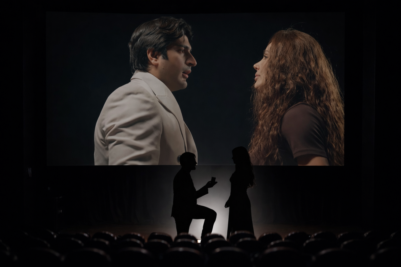 Необычное предложение руки и сердца в Баку - зритель, выкупив все билеты, в кинозал… - ВИДЕО