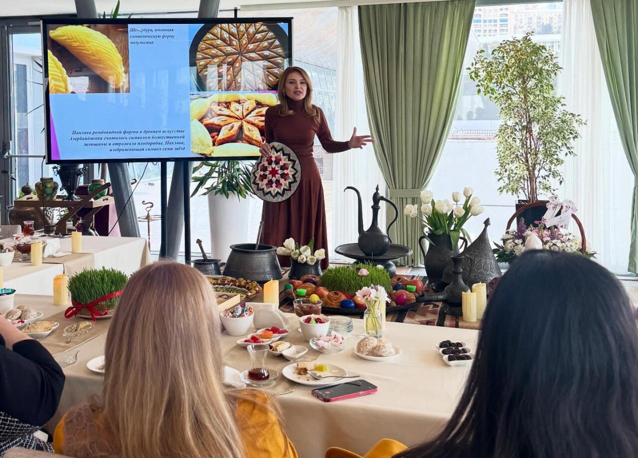 О традициях Новруза, с которыми мы встречаем пробуждающуюся природу, об его истории, символах и глубоких смыслах рассказала заслуженный деятель искусств, доктор искусствоведения Кюбра Алиева. Затем, как заведено при приготовлении национальных сладостей, участники собрались за общим столом, для украшения вкусной шекербуры. Каждая маленькая солнечная сладость покрывалась тонкими нахышами, словно впитывая в себя тепло рук и радость присутствующих. И хотя за окном погода ещё не совсем весенняя, на лицах были улыбки, а за столом праздничная атмосфера.