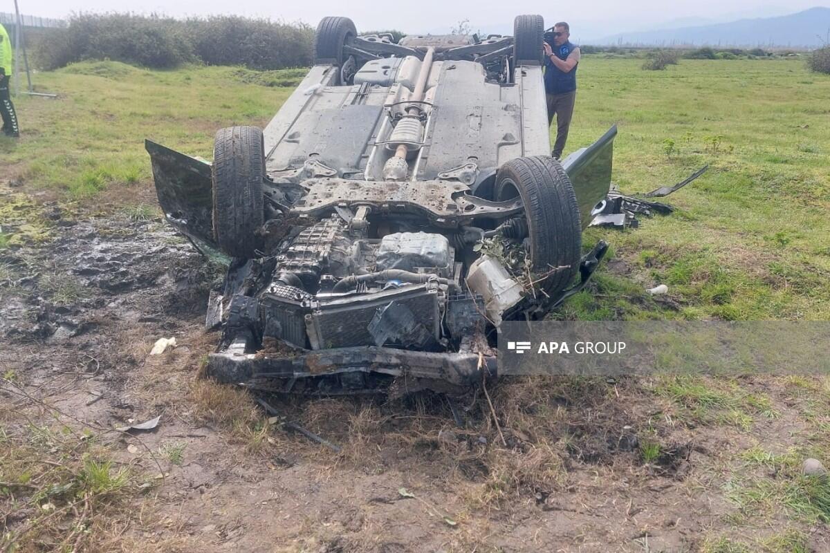 Водитель автомобиля марки "Hyundai Sonata" житель Баку Фаиг Мамедли (1991 г.р.) потерял управление. Машина съехала с дороги, перевернулась на водном канале у обочины и оказалась на поле.