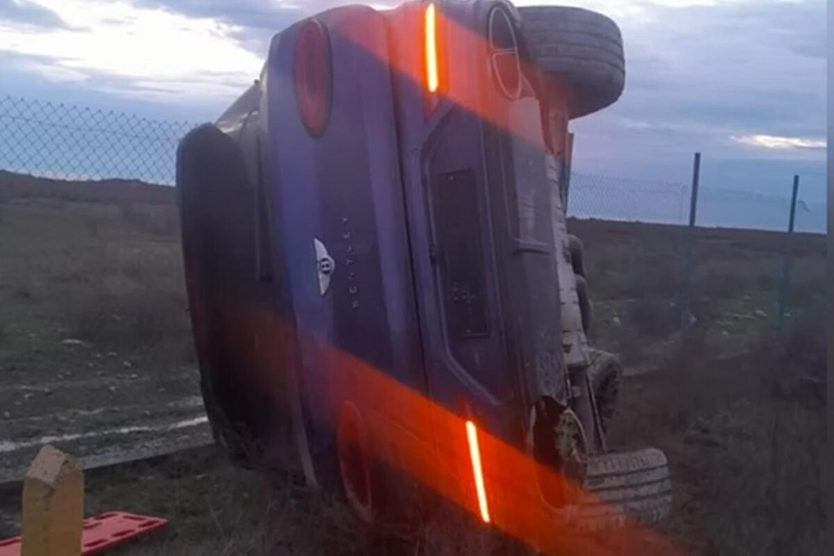 Автомобиль марки Bentley, двигавшийся по трассе Баку-Губа, вышел из-под контроля водителя и врезался в металлические ограждения на обочине и опрокинулся на бок.