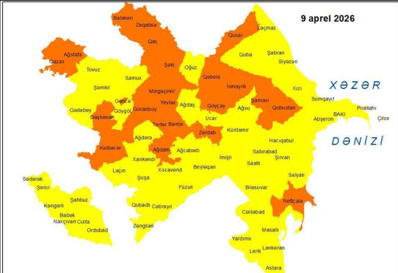 Национальная гидрометеорологическая служба объявила желтое и оранжевое предупреждения в связи с ветреной погодой, ожидаемой 9 апреля в Баку и на Абшеронском полуострове, а также в регионах.