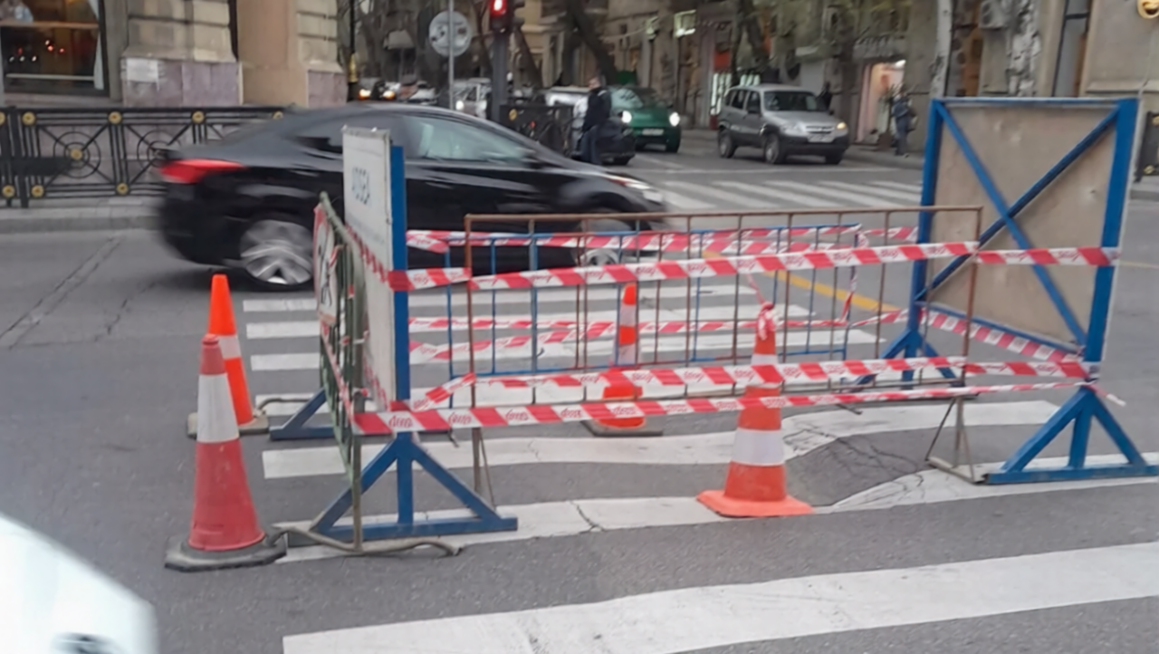Вчера на пересечении улиц Рашида Бейбутова и Сулеймана Рагимова в Баку произошло проседание дороги. Территория была огорожена, установлены предупреждающие знаки.