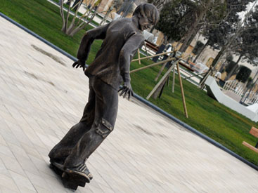 Наверное, каждый уже успел сфотографироваться рядом со ставшей уже знаменитой бронзовой девушкой с зонтиком, украшающей Площадь фонтанов. Девушка говорит по мобильному телефону и куда-то спешит под дождем. Она наша, бакинка, одна из нас. А на бульваре пишет картину бронзовый художник, смотрит вдаль бронзовый капитан, дядюшки играют на скамейке в нарды... Бронзовые люди нашего города. Бронзовые мгновения, в которых воплотилась душа азербайджанской столицы...