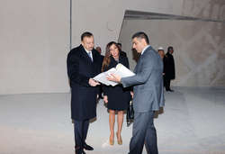 Президент Ильхам Алиев и его супруга Мехрибан Алиева приняли участие в открытии музея, построенного в Гобустанском заповеднике