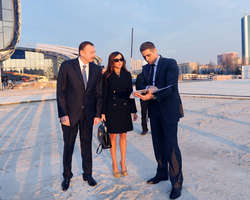 Президент Ильхам Алиев и его супруга Мехрибан Алиева ознакомились с ходом строительства Центра Гейдара Алиева