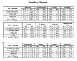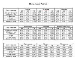 Стоимость проезда в поездах, следующих за границу из Баку – РАСШИРЕННАЯ ТАБЛИЦА