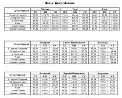 Для тех, кто собирается поехать в Россию и Украину, возможно, будет интересно ознакомиться с действующими тарифами на проезд в межгосударственных пассажирских поездах. Цены указаны в манатах.