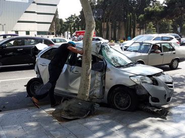 Как сообщает автор, сегодня на проспекте Нефтчиляр произошла авария. Автомобиль марки Range Rover протаранил такси. Информации о пострадавших нет.