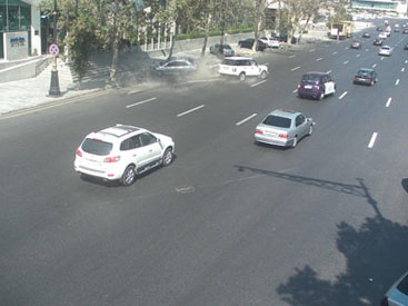 В Баку автомобиль марки Range Rover, на большой скорости, двигаясь по проспекту Нефтяников, столкнулся с такси, стоявшим перед гостиницей "Park İnn".