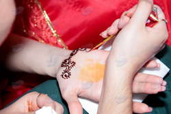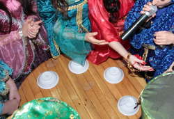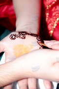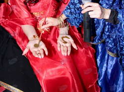 В прежние времена на девичнике молодежь сидела отдельно, старшие - отдельно. Девушки мазали друг друга хной - волосы, ладони. В нашей с вами современности обряд хнаяхты превратился в нечто более интересное, чем простое помазание ладони. Обычно хну мажут на внутреннюю часть ладони. В одну руку вписывают первую букву своего имени, а в другую - половинки, если есть. Но этим все не ограничивается. На церемонию хнаяхты, например, была приглашена специальная художница, которая делает очень красивые узоры на руках.