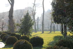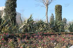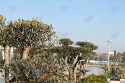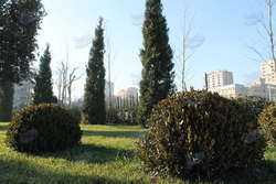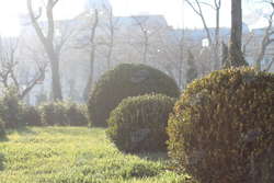 Далее по парку начинается мир зелени и деревьев, ухоженных, с разными "прическами". Несмотря на зимний сезон, в парке царит весенняя атмосфера и даже можно встретить живые цветы.
