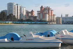 Еще одна необычная деталь - лодки, выстроившиеся на "мелководье". На них можно будет совершить маленькое путешествие по довольно-таки просторному водоему. К сожалению, кассы пока не действуют, и узнать, во сколько обойдется это удовольствие, мне не удалось.