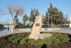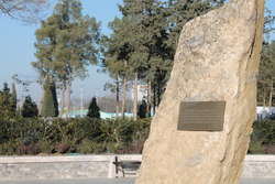 А вот еще один своеобразный памятник - камень, на котором записано, что здесь по указу Президента от 1 апреля 2000 года будет установлен памятник Деде Горгуду. Памятник уже воздвигнут, но эту плиту, по-моему, очень правильно не тронули - это тоже память, как бы напоминание, с чего все начиналось.