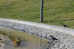 Но это еще не все. Здесь же создан чудесный водопад, у подножья которого раскинулся небольшой залив, где прямо в воде высажены водяные растения. Интересно, что этот рукотворный уголок природы уже облюбовали птицы.