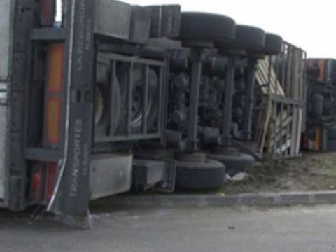 В Бинагадинском районе Баку перевернулся крупнотоннажный автомобиль.