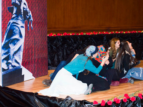Памятная церемония продолжилась подготовленной группой студентов района литературно-художественной композицией, отражающей ужасы Ходжалинского геноцида.