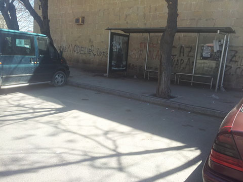 Автобусная остановка, расположенная на проспекте Хатаи рядом с бакинским железнодорожным вокзалом, используется не по назначению.