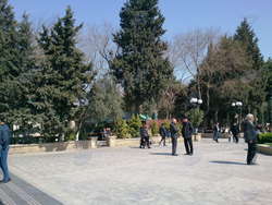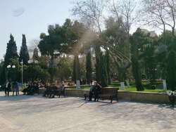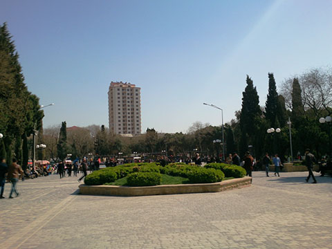 Слева - здание Налогового департамента. Но мы никуда не сворачиваем, а переходим дорогу к хорошо известному бакинцам еще с глухих советских времен парку имени Наримана Нариманова. Парк очень красиво отреставрирован, аттракционы обновлены. Помнится, с каким удовольствием мы ходили в детстве на веселые горки, "орбиту", а из игровых аппаратов любимым был морской бой. Были тут и еще более "древние" скрипучие качели и грохочущие карусели, относящиеся, видимо, уже ко временам молодости наших родителей. Сейчас здесь все по-другому и более современно, детей тут не меньше, чем когда-то. Шум, визг, смех, грохот "горок", проносящиеся мимо тинейджеры на роликах, обсуждающие молодежь на скамеечке бабушки, мамаши с колясками... Одним словом, в парке идет бурная жизнь.