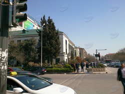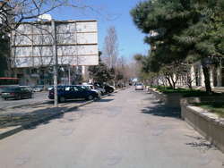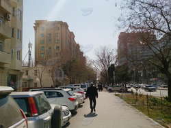 Кое-как перейдя дорогу, видим перед собой один из корпусов Азербайджанского университета языков, а сразу за ним - здание средней школы номер 77. Конечно же, в выходные учебные заведения были закрыты, так же, как и университет "Тефеккюр". Дороги в этой части улицы, надо сказать, нуждаются в немалом ремонте, да и тротуары находятся не в лучшем состоянии. Кстати, на этой территории расположено несколько довольно-таки хороших ресторанов и припаркованных автомобилей всегда достаточно.