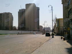Переходя дорогу, вспоминаю, что когда-то тут ходил трамвай. И не так уж и давно. Трамваи с грохотом и скрипом тормозили на остановке, а автомобили лавировали между ними вперемежку с традиционно нарушающими правила пешеходами... Старые бакинцы с ностальгией вспоминают бакинский трамвай. Но, честно говоря, не могу представить этот вид транспорта сегодня на этой улице. При нынешнем количестве авто он бы просто парализовал движение.