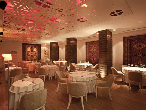 Интерьер ресторана "Sumakh" выполнен в современном стиле, но некоторые элементы оформления, такие, как развешанные на стенах ковры, имеют яркую национальную составляющую. Планировка ресторана стандартна и состоит из просторной кухни, одного кабинета и основного зала, где также расположен барный отсек.