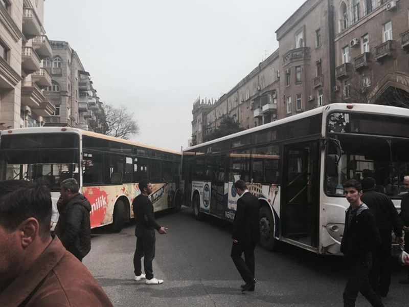 Перед зданием отеля "Mont İnn" столкнулись два автобуса, следовавших по одному и тому же маршруту - № 14, передает Day.Az со ссылкой на Qafqazinfo.az.
