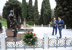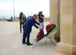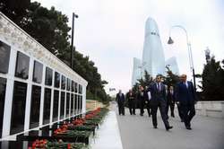 Затем гости посетили Шехидляр хиябаны, где почтили память героических сынов и дочерей Азербайджана, павших за независимость и территориальную целостность Азербайджана, возложили венок к мемориалу "Вечный огонь".