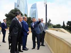 С самой высокой точки Баку гости полюбовались панорамой столицы Азербайджана. Они были проинформированы об истории Шехидляр хиябаны и проводимой в городе созидательной работе.