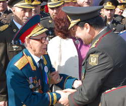 Около 130 наших соотечественников удостоены звания Героя Советского Союза, 30 награждены орденом "Слава". 170 тысяч солдат и офицеров Азербайджана награждены различными орденами и медалями СССР. Дважды Герой Советского Союза Ази Асланов, герои Советского Союза Исрафил Мамедов, Аслан Везиров, Адиль Гулиев, Зия Буниятов, Герай Асадов, Мелик Магеррамов, Мехди Гусейнзаде, генералы Махмуд Абилов, Аким Аббасов, Тарлан Алиярбеков, Гаджибала Зейналов и многие другие своим героизмом вписали новые страницы в славную историю нашего народа.