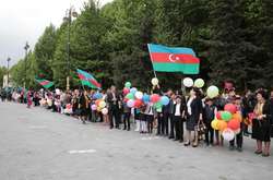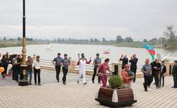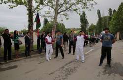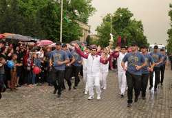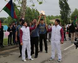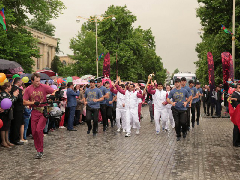 Первым факел принял трехкратный чемпион Азербайджана по самбо Аслан Мирзаев, после чего началось шествие на дистанции три километра с участием 10 факелоносцев.