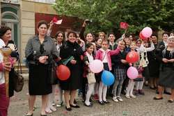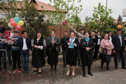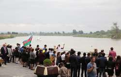 Факел был доставлен на центральную площадь Евлаха. На сооруженную на площади трибуну факел поднял председатель Молодежного объединения Евлахской районной организации правящей партии "Ени Азербайджан" (ПЕА) Ариз Микаилов.