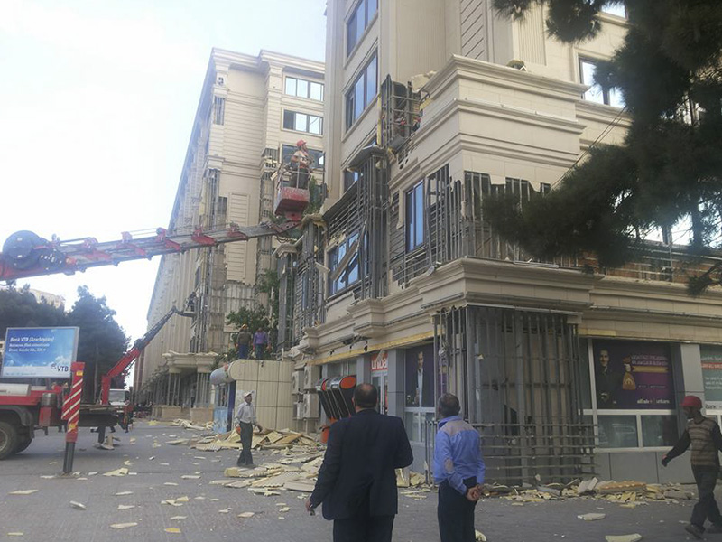 Как сообщил АПА заместитель главы ИВ Хатаинского района Рафиг Алиев, уже начаты работы по сносу: "По поручению президента и распоряжению главы ИВ Гаджибалы Абуталыбова начат демонтаж огнечувствительных облицовочных материалов".