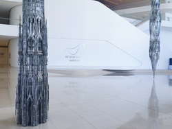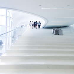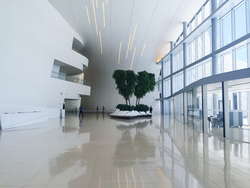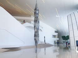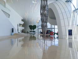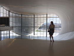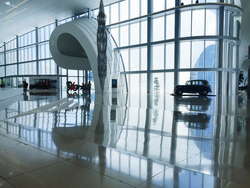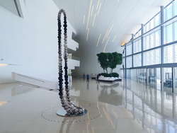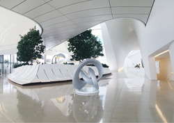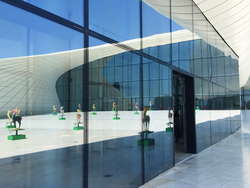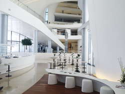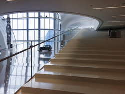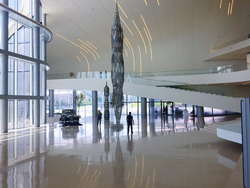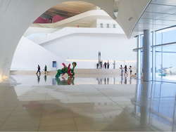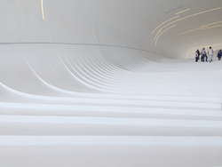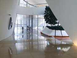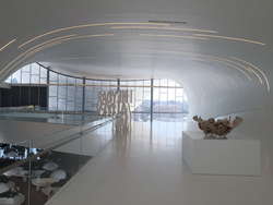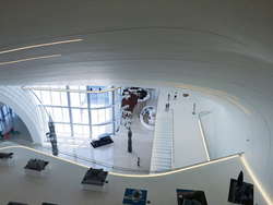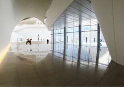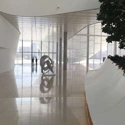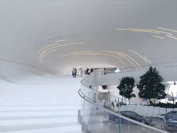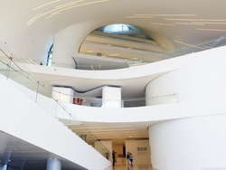 Внутри комплекса находятся библиотека, концертный зал и несколько этажей выставок. Стоит заметить, что здание изнутри поражает не меньше, чем снаружи! Белый цвет, идеальные линии, где потолок переходит в пол, а лестницы практически без ступенек плавно переходят с одного этажа на другой.