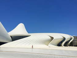 Еще до поездки в Баку я знала про Центр Гейдара Алиева, очень хотела увидеть это белоснежное здание на фоне зеленой травы, но ничего не знала об архитекторе и о том, что же находится внутри этого центра. Точнее, я просто этим не интересовалась... не интересовалась до поездки!