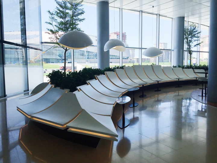 На первом этаже расположено кафе, про которое я уже писала в блоке Гастрономический Баку. Но обратите внимание на кресла и лампы!!! В этом здании красиво все - от стен, до мебели и даже еды!