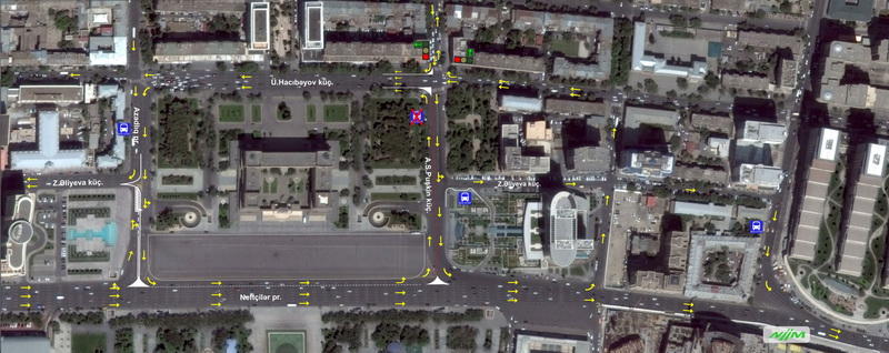 Центр интеллектуального управления транспортом Баку разрабатывает новые предложения по устранению пробок на городских улицах. Специалисты центра провели исследования на улицах Уз.Гаджибейли, З.Алиевой, А.Пушкина, проспектах Нефтчиляр, Азадлыг, и убедились, что организация дорожного движения на данных улицах и проспектах по нижеприведенной схеме и на основе соответствующих предложений предотвратит образование заторов в различное время суток.