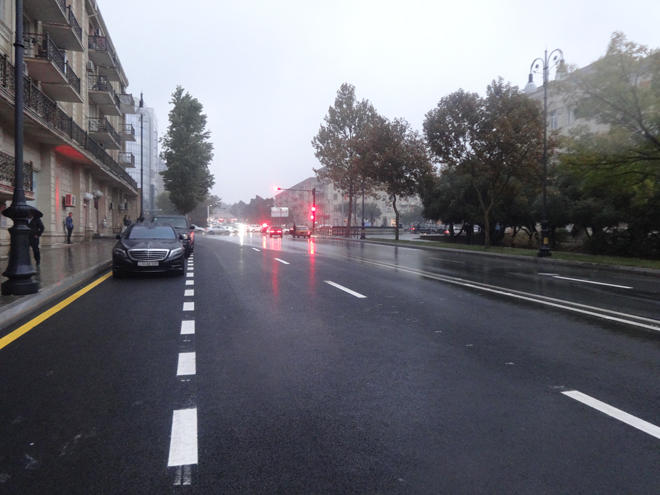 Было основательно отремонтировано асфальтово-бетонное покрытие площадью 35 тысяч квадратных метров на участке дороги от памятника Нариману Нариманову до Парламентского проспекта, от улицы Гасана Сеидбейли до улицы Сулеймана Тагизаде.