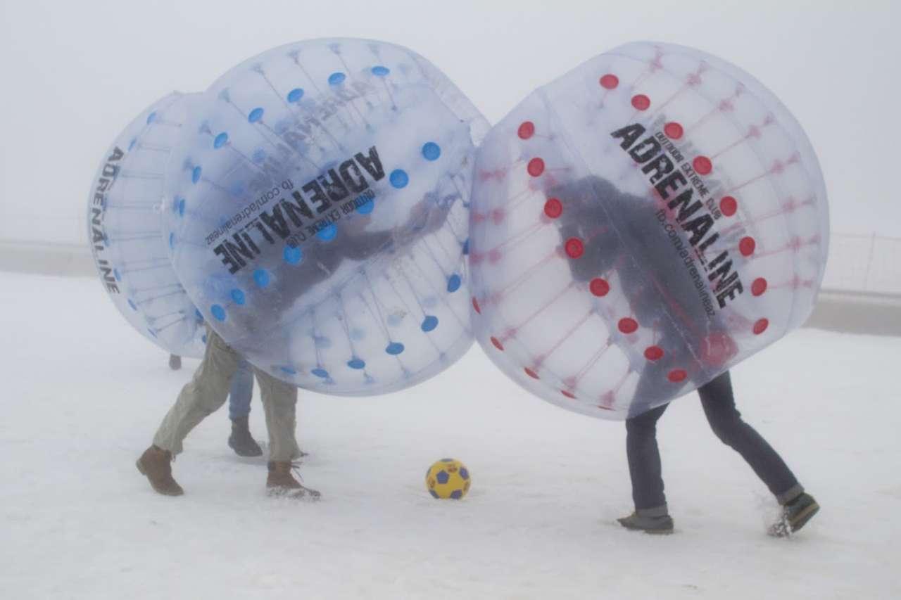 Первый раз в мире эта игра была экспериментирована в зимних условиях. Игроки не только ударялись и разлетались по разным сторонам, но и еще скользили с этим шаром в разные стороны. 6 экстремальных команд по олимпийской системе показали свое умение креативной игры в футбол. В каждой команде участвовали 2 девушки и 2 парня. В очень интересном турнире первое место заняли игроки команды "Cool Humsters". Победители получили подарки от партнеров проекта.