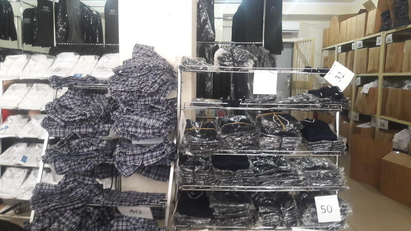Магазин разделен на две части, форма всех размеров разложена на стеллажах за перегородкой и выдается покупателям расторопными и внимательными продавщицами. В переднем ряду стеллажей ровными рядами белеют сорочки и тенниски, далее -клетчатые юбочки для девочек, и последними идут жилеты и пиджаки. На рукавах пиджаков - логотип BTE.