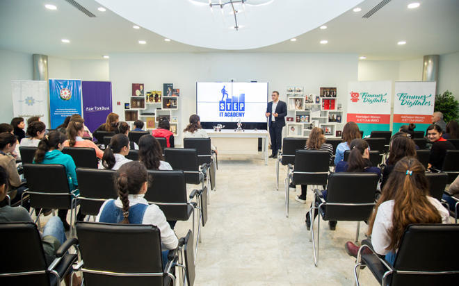 Далее мероприятие продолжилось практической частью в представлении STEP IT Academy Azerbaijan, являющейся международным учебным заведением, специализирующимся на компьютерном образовании. В ходе практических занятий участницы наглядно ознакомились с процессом сборки роботов и других автоматизированных тестовых механизмов, и приобрели начальные навыки в этой сфере.