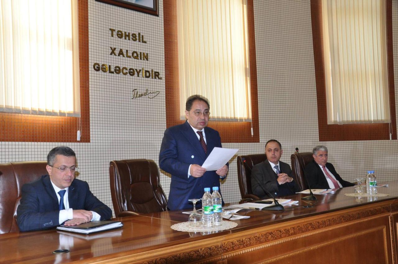 Затем с докладом о научно-педагогической деятельности профессора Азиза Асадова выступил декан юридического факультета БГУ, профессор Амир Алиев.