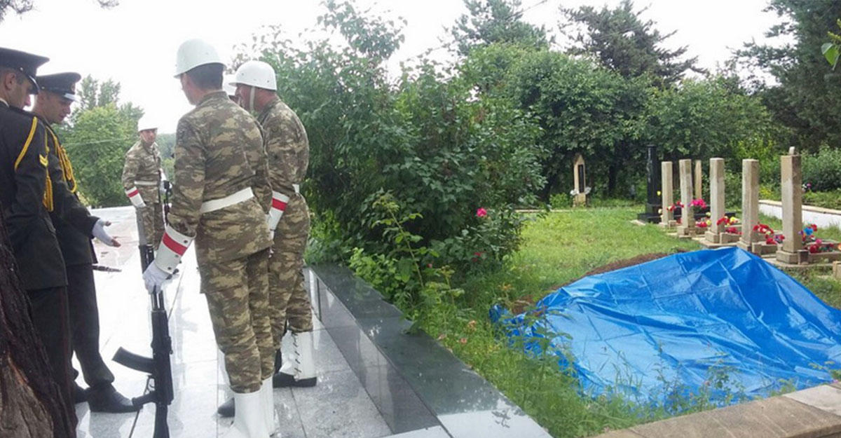 После залпового огня шехид был предан земле, членам семьи был передан трехцветный флаг, в который был завернут гроб с телом шехида.