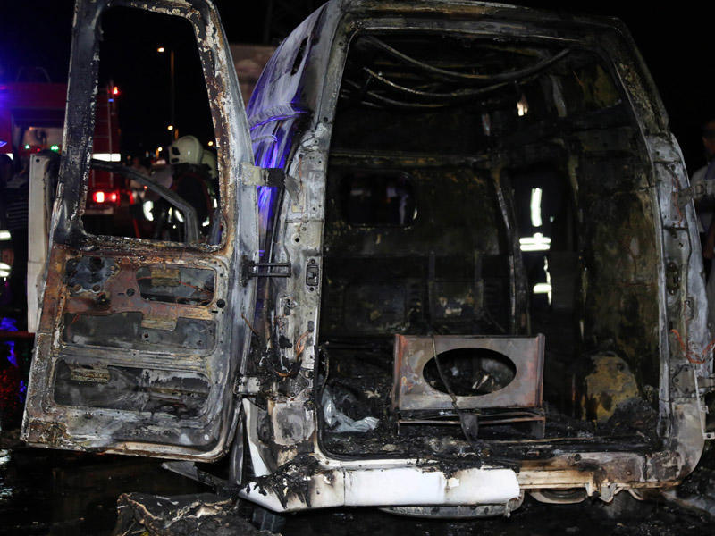 Внутри сгоревшей в Баку машины скорой помощи, принадлежащей 12-й подстанции, находился больной и врачи.
