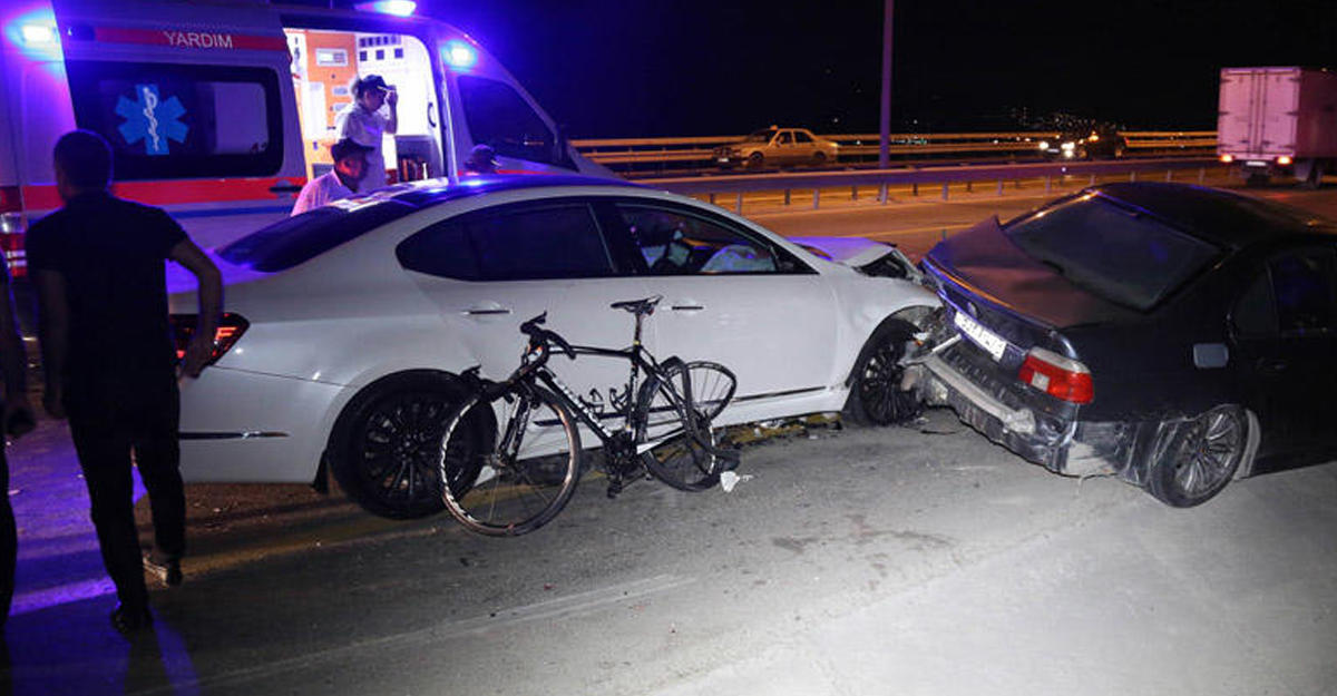 Ехавший сзади автомобиль марки KIA врезался в BMW. В результате управлявший велосипедом мужчина примерно 35 лет погиб на месте происшествия. Другой велосипедист - женщина - получила различные телесные повреждения и была доставлена в больницу.
