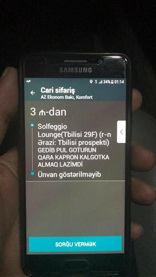Как сообщил журналист Махир Мамедли, в пришедшем таксисту сообщении с заказом было написано: "Поезжайте и заберите деньги. Необходимо купить черные капроновые колготки".