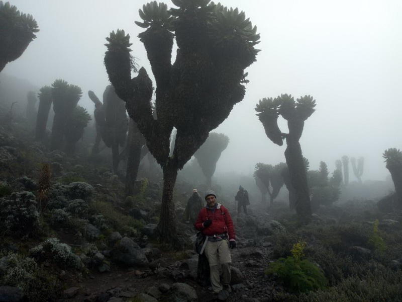 Поднимаясь на вершину, вы проходите плодородные участки используемые для выращивания кофе или бананов, после чего вас ожидает 10-15-километровая полоса густого тропического леса, переходящего в кустарники и заросли различной травы, рассказывает Джамал Кашкай. Выше вас ждут очаровательные крестовники величиной с дерево, обособленные или растущие группой - очень необычные и симпатичные растения. На четвертый день вы уже проходите альпийскую скалистую пустыню, переходящую в арктическую (снежную) зону по дороге к вершине.