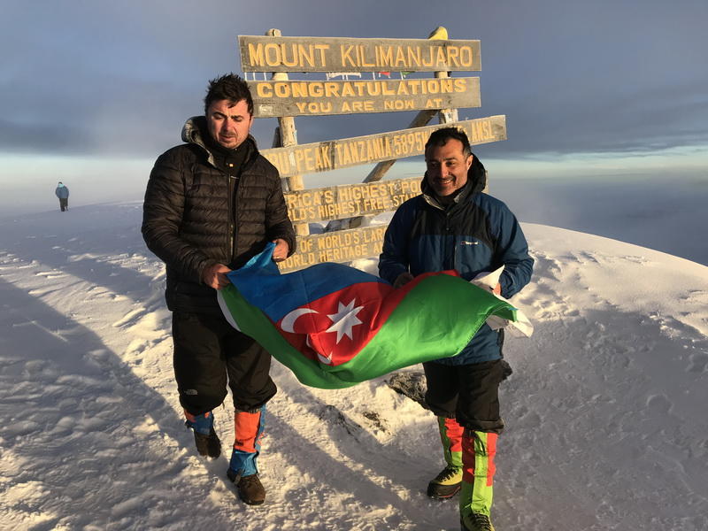 В последний день марта азербайджанские альпинисты Рустам Магеррамов и Джамал Кашкай подняли флаг Азербайджана на высочайшей вершине Африканского континента - горе Килиманджаро.