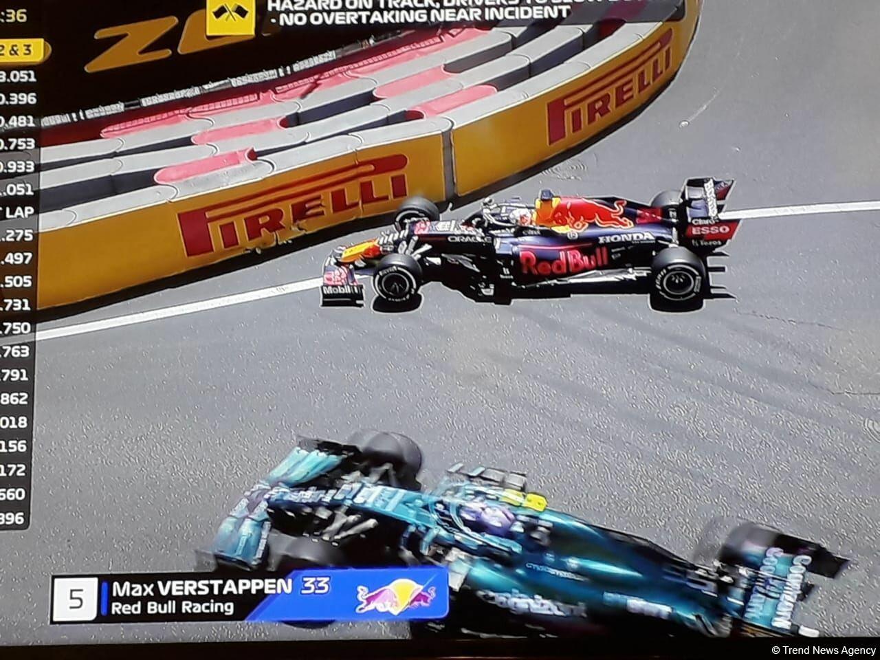 Как передает в субботу Day.Az, пилот команды Red Bull Racing Honda Макс Ферстаппен потерял управление, и его болид врезался в ограждение трека.