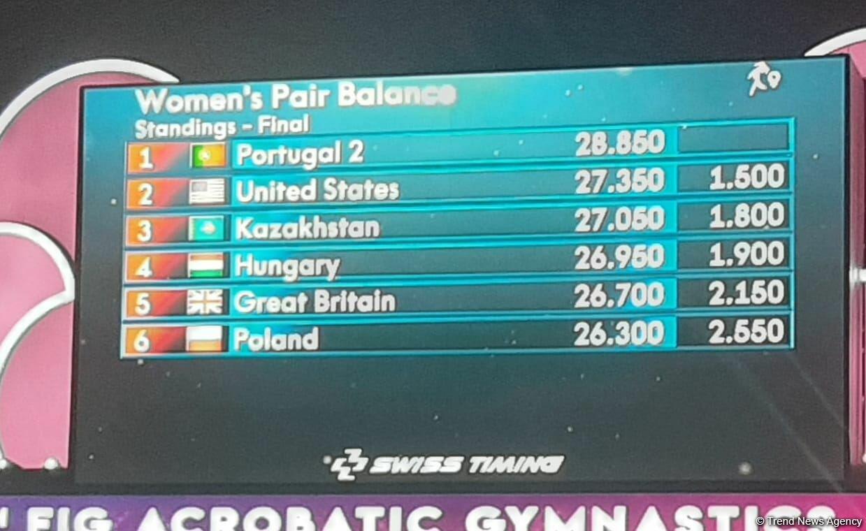 ЧМ в Баку: Женская пара из Португалии заняла первое место в программе балансового упражнения